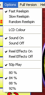 • Set the speed at which the reels spin. This is useful if you either have a fast or a slow computer. The settings for this option are from Fast, Slow and Random. Once you have found the optimum setting for your computer, there is no need to use this option again, your setting will be saved.